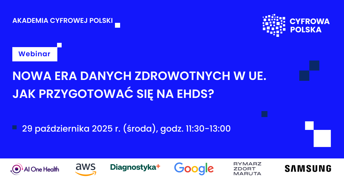 Szczegóły na stronie organizatora Cyfrowa Polska : https://cyfrowapolska.org/akademia-cyfrowej-polski-nowa-era-danych-zdrowotnych-w-ue-jak-przygotowac-sie-na-ehds/?fbclid=IwY2xjawNm3-RleHRuA2FlbQIxMQABHrTO4Nkjb4d46W9WYhuOFBljjIk-YJo7EQ7bFi7sllgujQ7VVkCsu83VU_wa_aem_AsFvccqCJnC9BUHtl9jd0w